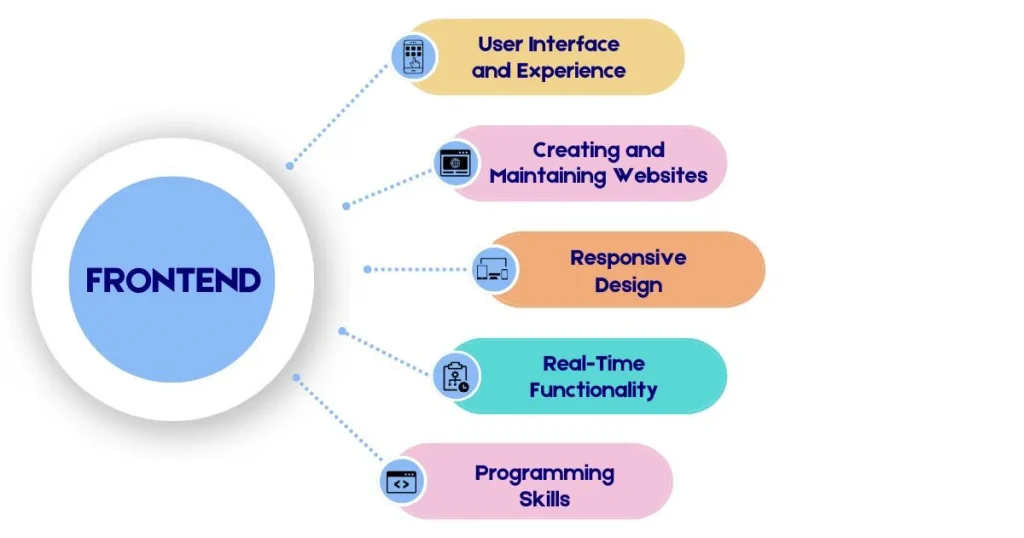 The front end is what people see and use on a website. It includes everything that appears on your screen when you visit a website: text, images, buttons, menus, and forms. This part of a website is also called the client side because it happens on the user’s device. Front-End vs. Back-End Development involves designing how a website looks and ensuring that it works smoothly for users.