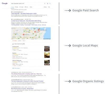 Google Organic Listings: The websites you see in the organic listings (and maps) are there because Google believes they are the best quality and most relevant to the search intent. The process of earning your place in Google’s organic and map listings is called Search Engine Optimisation.